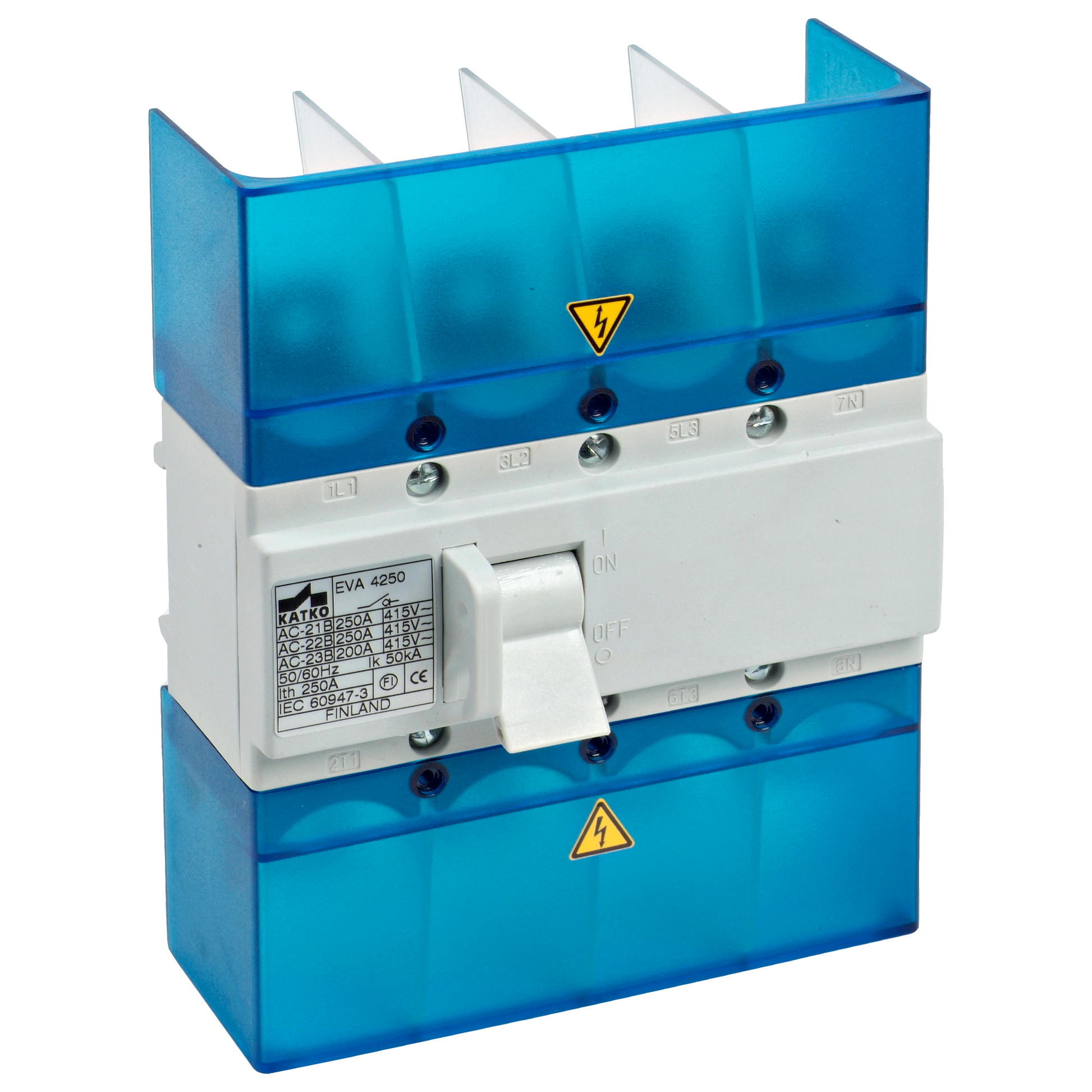 Katko LoadSafe EVA toggle load break switches (200–250A) are robust and compact solutions designed for reliable load switching in medium-capacity electrical systems. Available in 3- and 4-pole versions with options for terminal covers and phase barriers, these switches support flexible installation requirements while maintaining straightforward operation.
