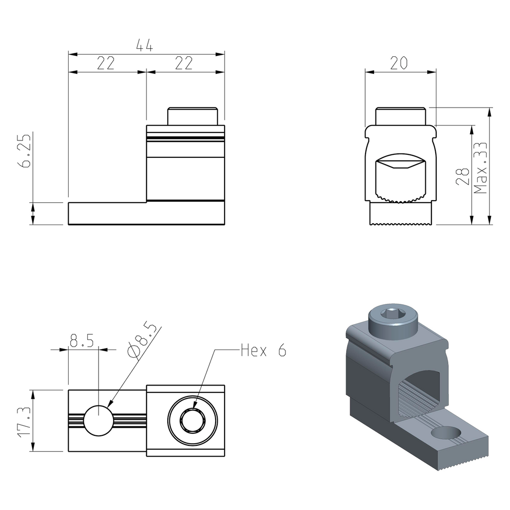 12 (16-50 mm²) / 22 (70-95 mm²)