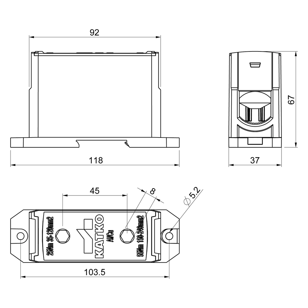 25 (35 - 120 mm²) / 55 (150 - 240 mm²)