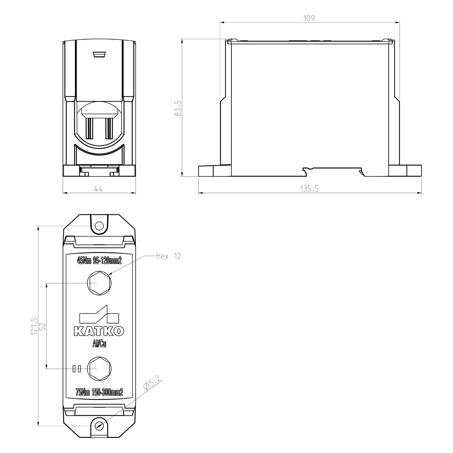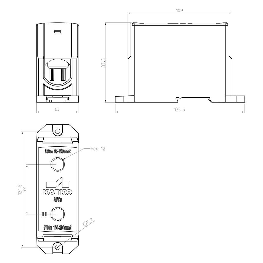 45 (95-120 mm²) / 75 (150-300 mm²)