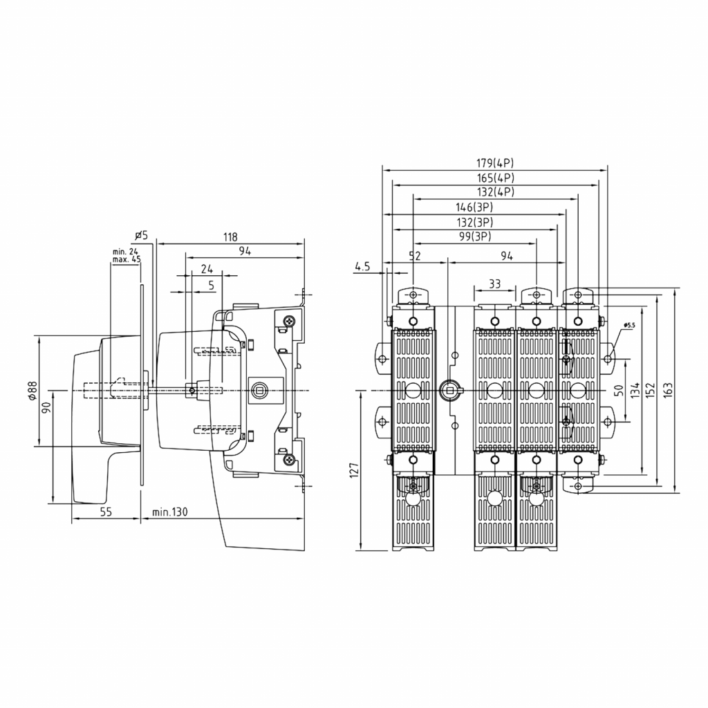 3-pole, Includes shaft 220 mm, Handle, Fuse covers