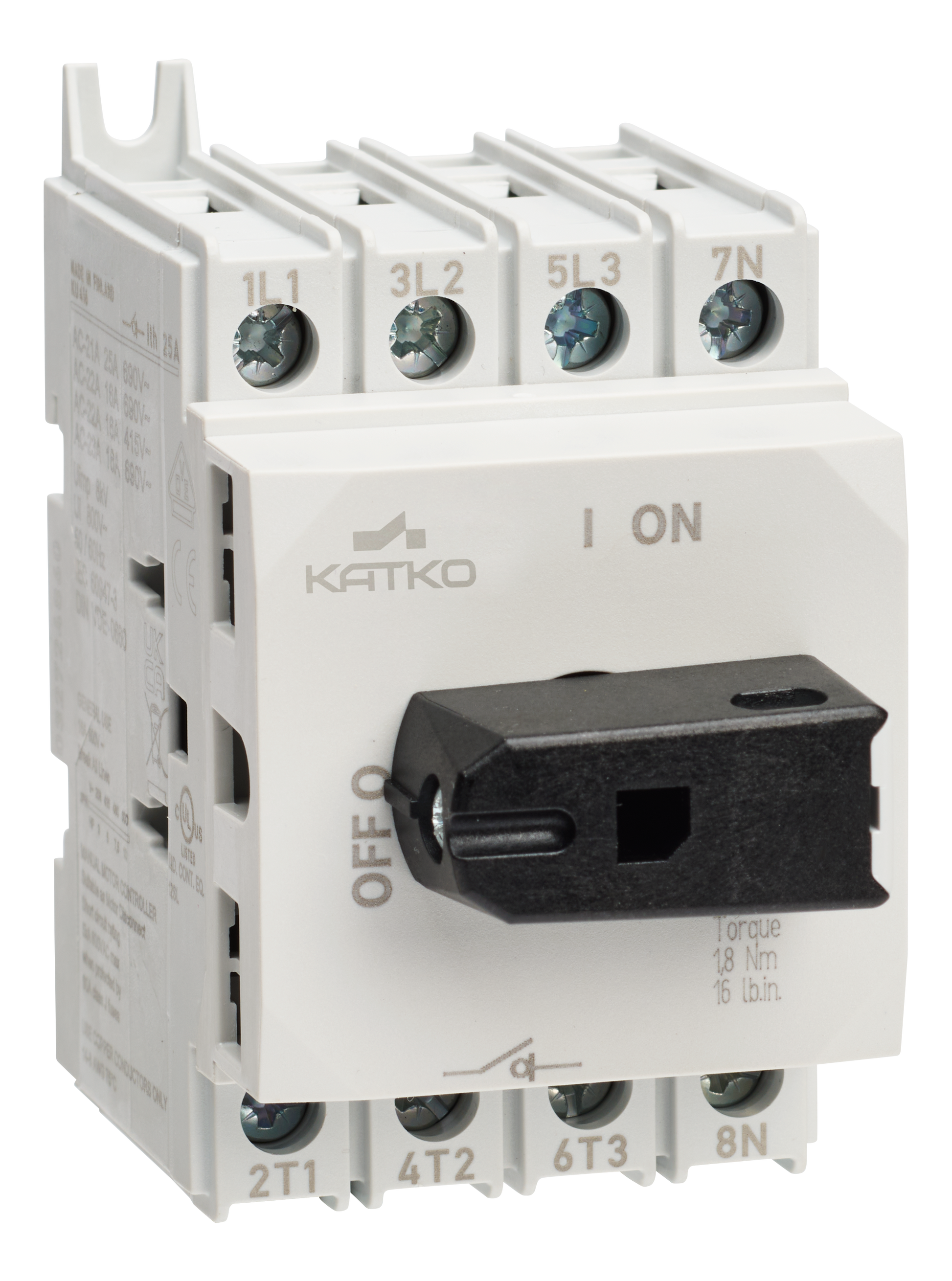 Katko UL/cUL listed LoadSafe load break switches 16–40A are compact solutions for safe and reliable load switching in industrial and building installations. Designed for smaller current ranges, they provide clear disconnection and dependable operation where space efficiency and compliance are essential. Certified according to UL and CSA requirements and compliant with UL 60947-4-1A, these switches support safe and consistent power control.